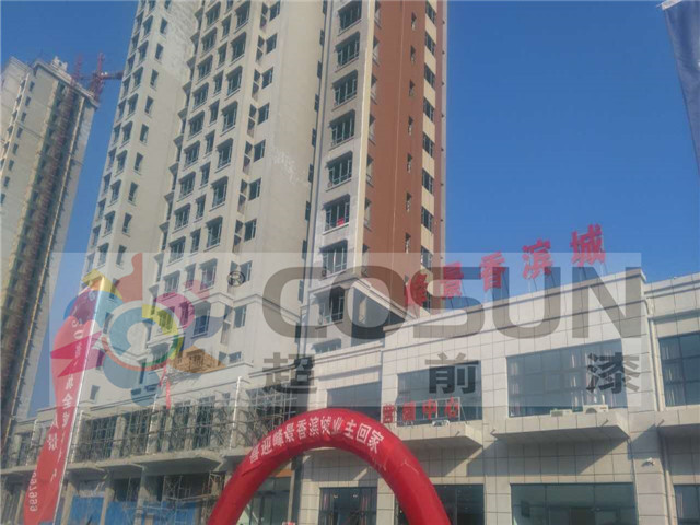 超前涂料 CCTV黃金展位合作伙伴山西晉城香檳城工地面積30萬(wàn)平方,21棟大樓,2棟商業(yè)樓,自2014年一期中使用超前漆施工的1號(hào)樓至今三年已過(guò)去依然是不臟、不花、不褪色!正因?yàn)槌捌岬馁|(zhì)量穩(wěn)定服務(wù)好,被峰景集團(tuán)指定超前漆品牌為香檳城外墻用漆,已達(dá)成長(zhǎng)期合作,一期二期項(xiàng)目中選用了超前巖片漆、質(zhì)感漆、乳膠漆、多彩漆、產(chǎn)品配套的專用底漆面漆為指定產(chǎn)品。