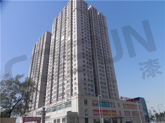 三、外墻真石漆施工要求同批料用在同面墻上,同時(shí)還建議同批施工人員進(jìn)行施工,施工時(shí)噴涂要求做到厚薄均勻一致,以防色差出現(xiàn)。